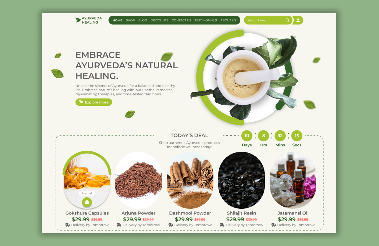 Ayurvedic Medicine – elegant solution crafted for herbal product sellers, Ayurveda practitioners, and natural health enthusiasts. This clean and minimal theme offers just what you need to launch your online presence quickly and effectively. The highlight of the version is its modern homepage slider, where you can display eye-catching visuals, product highlights, orpromotional banners. This section allows you to immediately engage visitors and introduce your brand with clarity and professionalism. Below the slider, the theme features an engaging "Today's Deal" shop section, ideal for showcasing featured or time-sensitive products. Whether you want to promote best-selling herbal teas, natural remedies, or Ayurvedic skincare, this section is perfect for grabbing user attention and driving clicks to your products.
