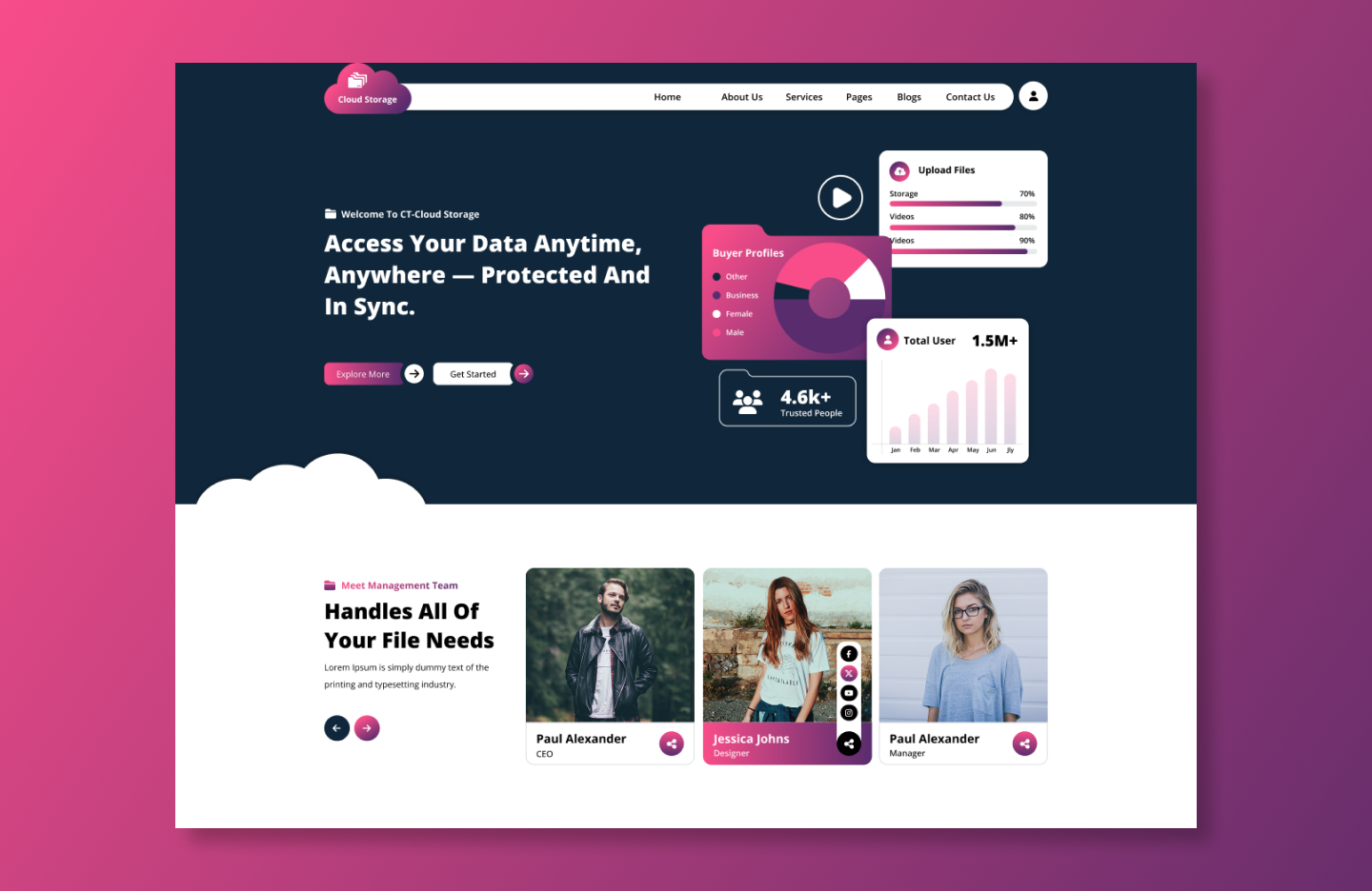 Cloud Storage Services is a modern, feature-rich Cloud Storage designed for businesses, IT companies, startups, and freelancers who want to present cloud solutions, data management, and storage services online. With its clean and professional design, this theme makes it easy for visitors to explore your offerings and understand your services quickly. Its fully responsive layout ensures your website looks flawless on desktops, tablets, and mobile devices, providing a seamless user experience across all platforms.